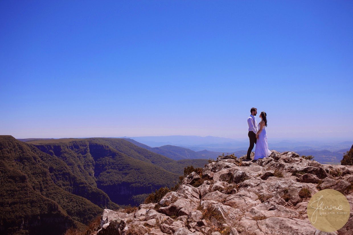 Havíamos marcado esse ensaio bem no comecinho do ano, para setembro. Mesmo marcado com tanta antecedência tivemos o maior imprevisto de todos, aquele que não se pode controlar e nem encarar, o tempo. Acordamos em um dia com muita chuva e tivemos que remarcar. Passamos então para o finalzinho do ano e novamente, acordamos com um tempo muito feio. Muito preocupados com o próximo dia, acabamos por ter uma surpresa: Um dia lindo, ensolarado, até sem vento e sem neblina, como é de costume nos Canyons. Tudo então estava perfeito, nossos noivos lindos e radiantes, super dispostos e com uma alegria contagiante!