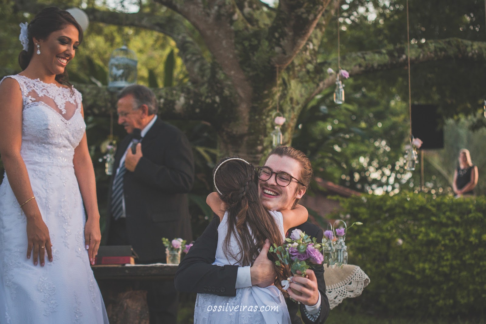 Chegando na casa da Roberta para fotografar o making of, foram suficientes 20 minutinhos para céu limpar e o sol sorrir na janela do quarto em que ela se arrumava, foi lindo de ver o sorriso que estampou o rosto da minha amiga e aquela mudança de tempo repentina não tinha explicação nenhuma, até que na cerimônia chegou a hora dos votos e tudo ficou muito claro pra nós, quando o Luan contou que na sexta-feira à noite quando começou a chover ele e a Roberta, cada um em sua casa, ajoelhados oraram por mais de uma hora para que tudo ocorresse da melhor forma e principalmente, que a chuva parasse.