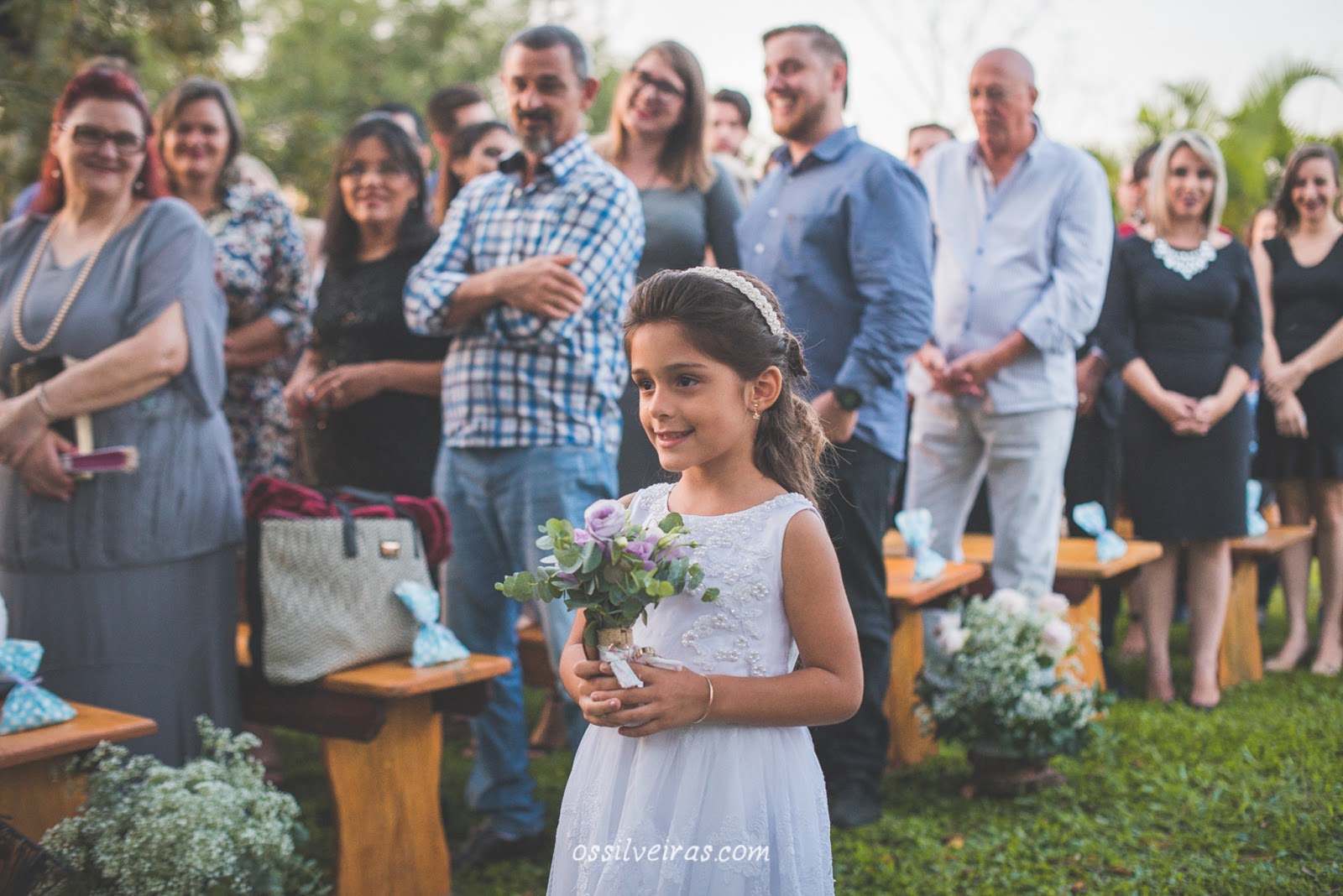 Chegando na casa da Roberta para fotografar o making of, foram suficientes 20 minutinhos para céu limpar e o sol sorrir na janela do quarto em que ela se arrumava, foi lindo de ver o sorriso que estampou o rosto da minha amiga e aquela mudança de tempo repentina não tinha explicação nenhuma, até que na cerimônia chegou a hora dos votos e tudo ficou muito claro pra nós, quando o Luan contou que na sexta-feira à noite quando começou a chover ele e a Roberta, cada um em sua casa, ajoelhados oraram por mais de uma hora para que tudo ocorresse da melhor forma e principalmente, que a chuva parasse.